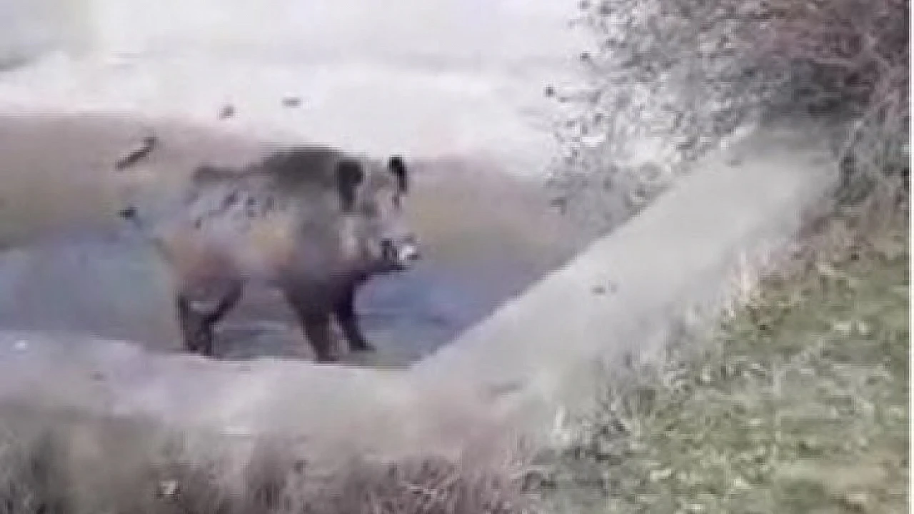 Elazığ'ın Baskil ilçesinde boş sulama havuzuna düşen yaralı domuz, kendisini kurtarmak isteyen vatandaşlara saldırmaya çalıştı. Vatandaşlar domuzun havuzda olmasına rağmen panikle kaçıştı.