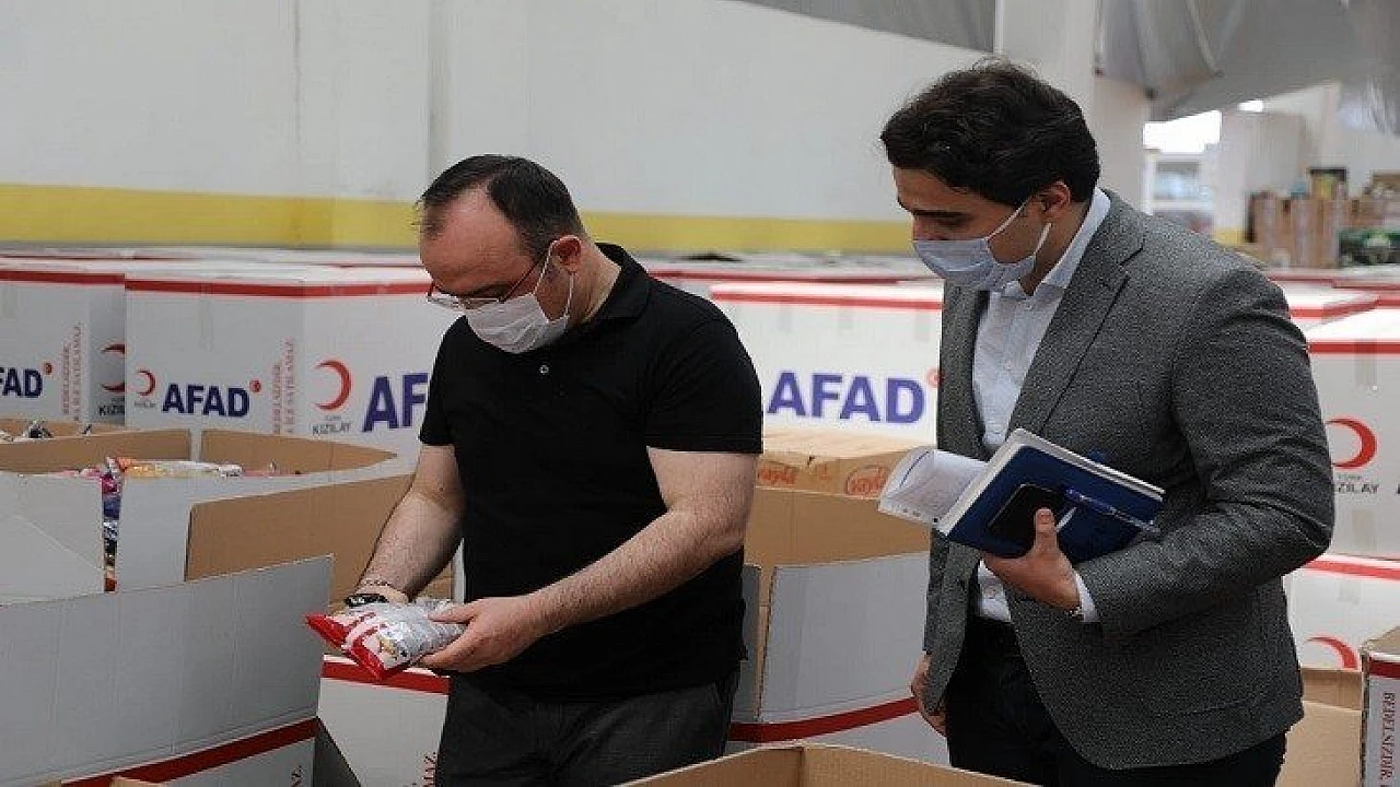 Elazığ valisi Erkaya Yırık, yardım paketlerinin depolandığı alanda incelemelerde bulunmuş, yardım paketlerinin bir an evvel dağıtımının tamamlanması talimatını vermişti.