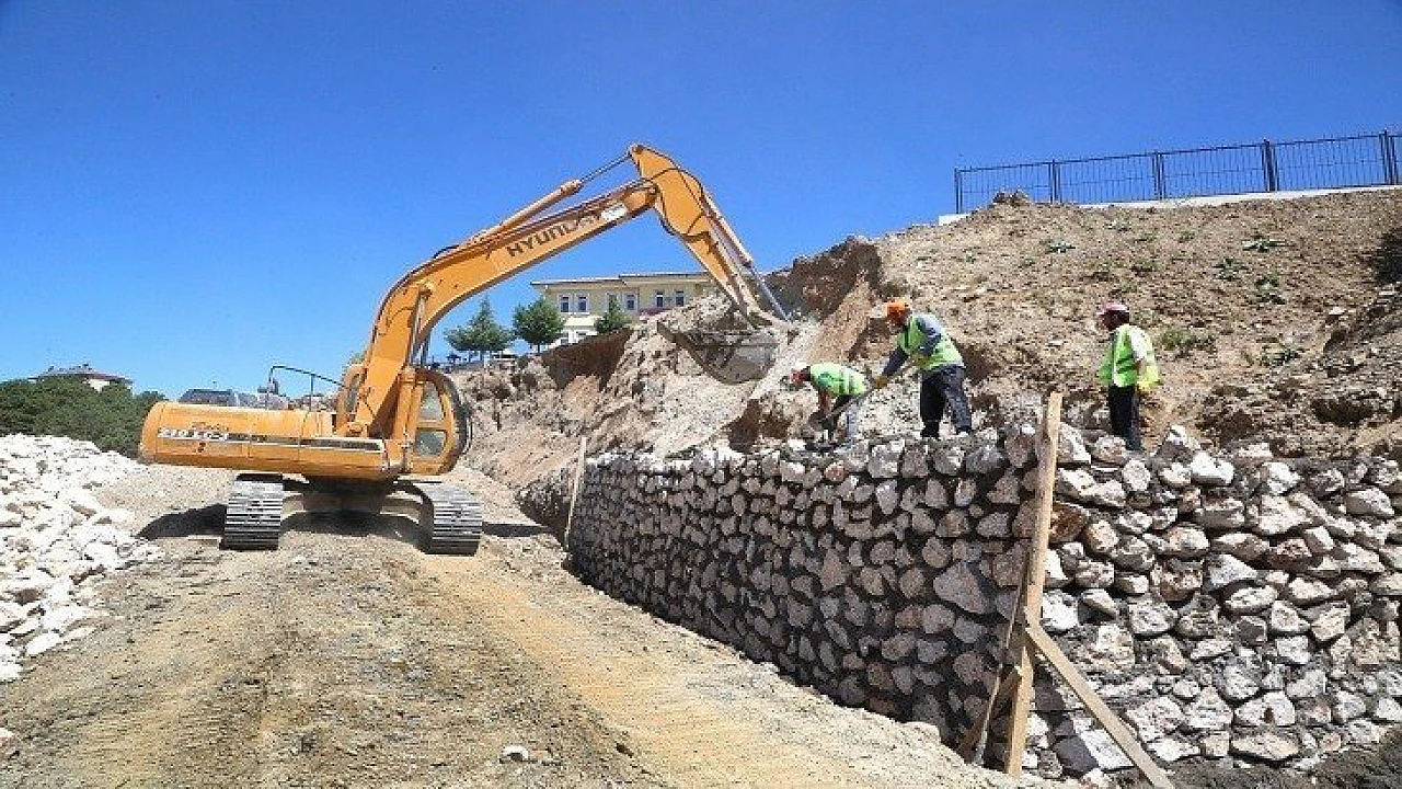 Hafriyat alım çalışmalarının tamamlanmasının ardından zeminin kaymasını önlemek amacıyla başlatılan istinat duvarı örüm çalışmaları sürüyor. Çalışmaların tamamlanmasının ardından yol altyapı çalışmalarına geçilerek, asfalt serimi gerçekleştirilecek.