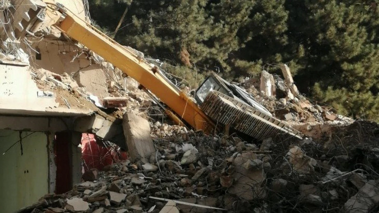 Yıkım sırasında kepçe yan yattı, operatör yara almadan kurtuldu