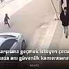 Çocuğun hastanedeki tedavisi sürerken, kaza anı bölgede bulunan bir iş yerinin güvenlik kamerasına saniye saniye yansıdı.