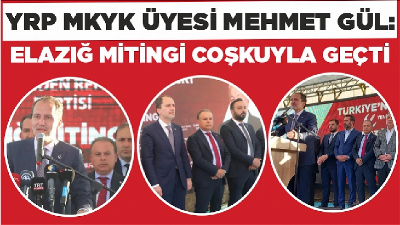 Yeniden Refah Partisi MKYK Üyesi ve Genel Merkez Teşkilat Başkan Yardımcısı Mehmet Gül, Genel Başkan Dr. Fatih Erbakan'ın katılımıyla gerçekleşen Elazığ Mitinginin coşkuyla geçtiğini kaydetti.