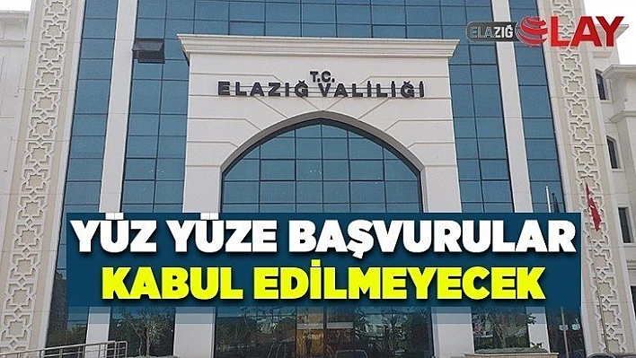 Kısa mesaj (SMS) ile vatandaşları bilgilendiren Elazığ Valiliği şu ifadelere yer verdi: "Değerli Elazığlı hemşehrilerimiz, Ülkemizde ve ilimizde alınan Koronavirüs (Kovit-19) tedbirleri kapsamında bütün talep ve yardım başvuruları SYDV'ye ait aşağıda belirtilen telefon numaraları aracılığıyla alınacak olup, yüz yüze başvurular kabul edilmeyecektir."